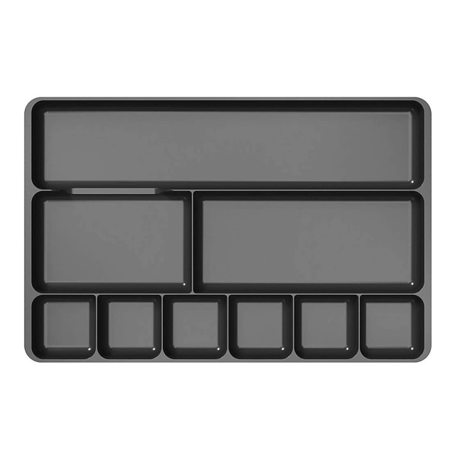 Nine compartments provide easy access to small items; fits most standard desk drawers
